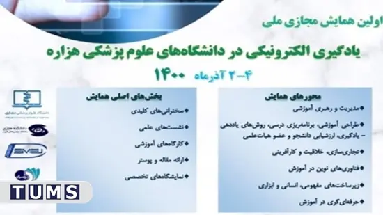به گزارش روابط عمومی دانشگاه علوم پزشکی تهران، نخستین همایش ملی یادگیری الکترونیکی در دانشگاههای علوم پزشکی هزاره برای اعضای هیئت علمی دانشگاههای علوم پزشکی، دانشجویان دانشگاههای علوم پزشکی و همه فارغالتحصیلان رشتههای مرتبط با آموزش وزارت بهداشت و وزارت علوم دوم تا چهارم سال 1400 برگزار میشود.