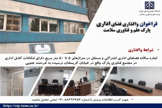 فراخوان واگذاری فضای اداری پارک علم و فناوری سلامت دانشگاه علوم پزشکی تهران