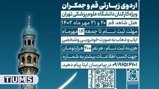 ثبت‌نام اردوی خانوادگی قم و جمکران در دانشگاه علوم پزشکی تهران آغاز شد