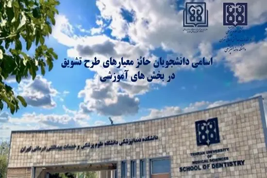 اسامی دانشجویان دانشگاه علوم پزشکی تهران حائز معیارهای طرح تشویق در بخش های آموزشی