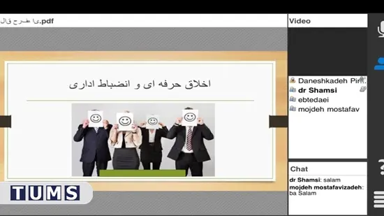 در این وبینار در خصوص مفهوم اخلاق حرفه‌ای، شاخص‌های اخلاق حرفه‌ای، مشخصات یک کارمند حرفه‌ای و رعایت اخلاق حرفه‌ای در ادارات مطالبی ارائه شد.